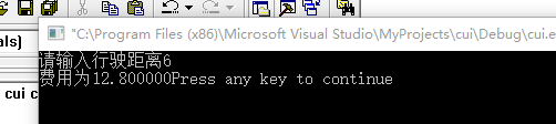 #include <stdio.h> main() { double x,f; printf("请输入行驶距离"); scanf("%lf",&x); if(x<3) printf("费用为8元"); else printf("费用为%f",(x-3)*1.6+8); }