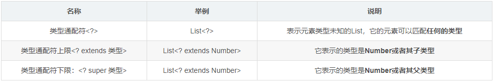 - 使用类型通配符,可以用于表示各种泛型List的父类