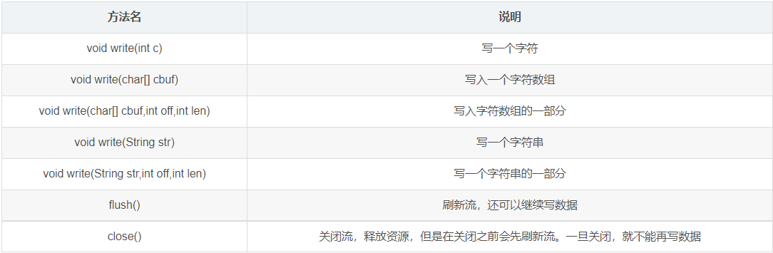 - BufferedWriter:将文本写入字符输出流,缓冲字符,以提供单个字符,数组和字符串的高效写入,可以指定缓冲区大小,或者可以接收默认大小。默认值足够大,可用于大多数用途