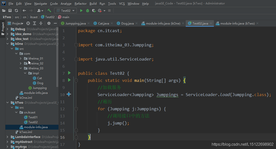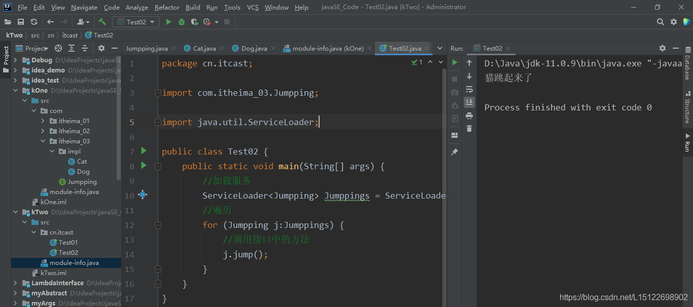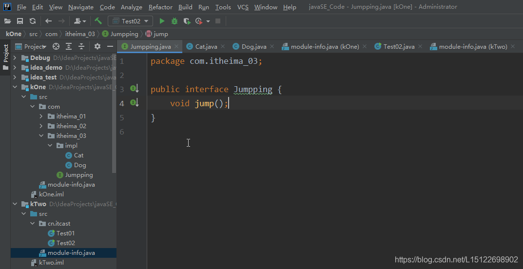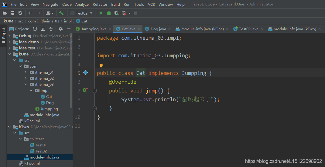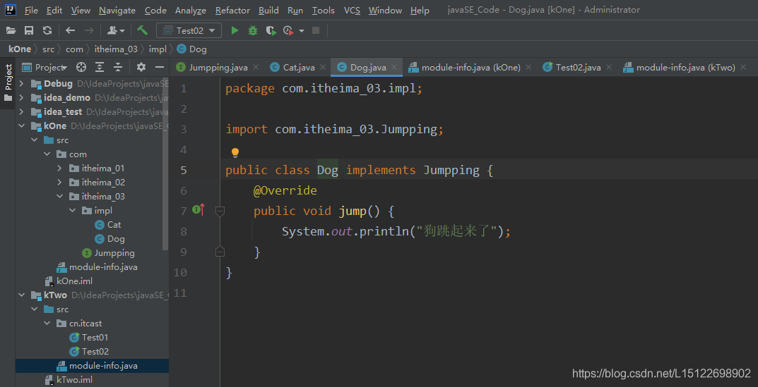 1.在kOne模块中新建一个包,提供一个接口和两个实现类