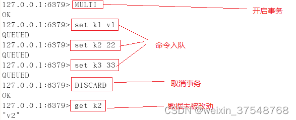 - discard : 取消事务,放弃事务块中的所有命令