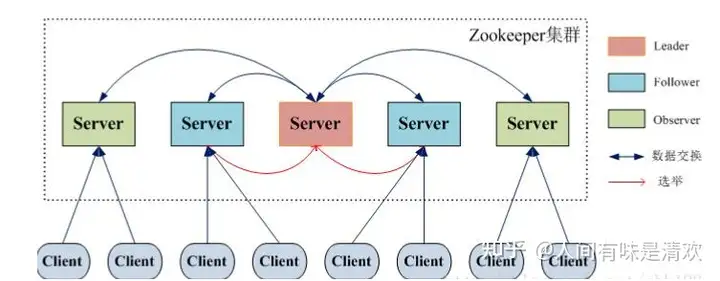 - 这里面的每一个节点被称为:ZNode,每个节点上都会保存自己的数据和节点信息