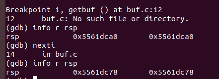 第一题挺简单的,要求getbuf函数不返回到原本的Test函数,而是返回到指定的touch1函数。