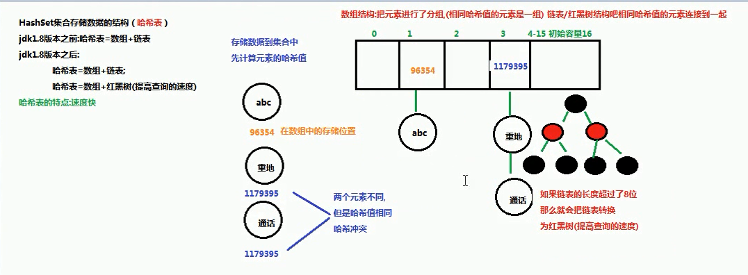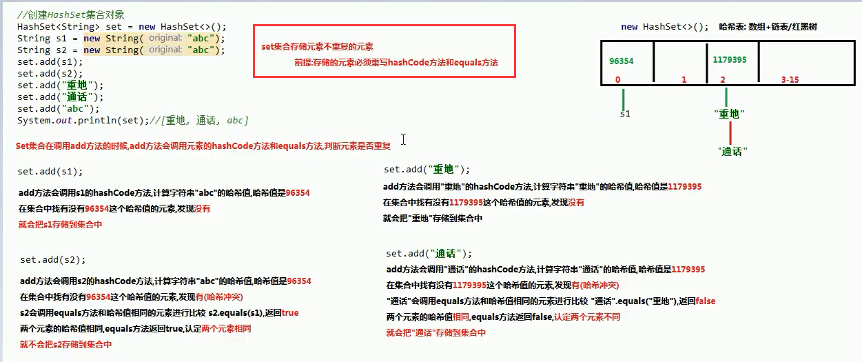存储的元素(String,Integer,...Student,Person...),必须重写hashCode方法和equals方法