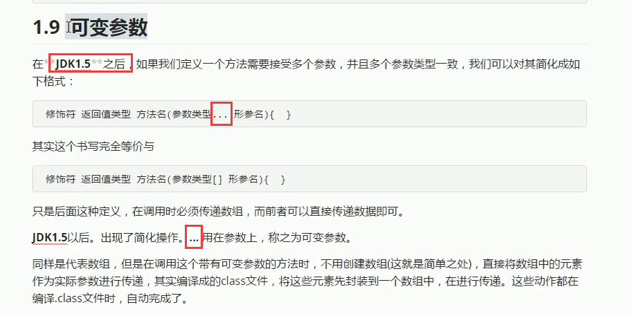 2.如果方法的参数有多个,那么可变参数必须写在参数列表的末尾