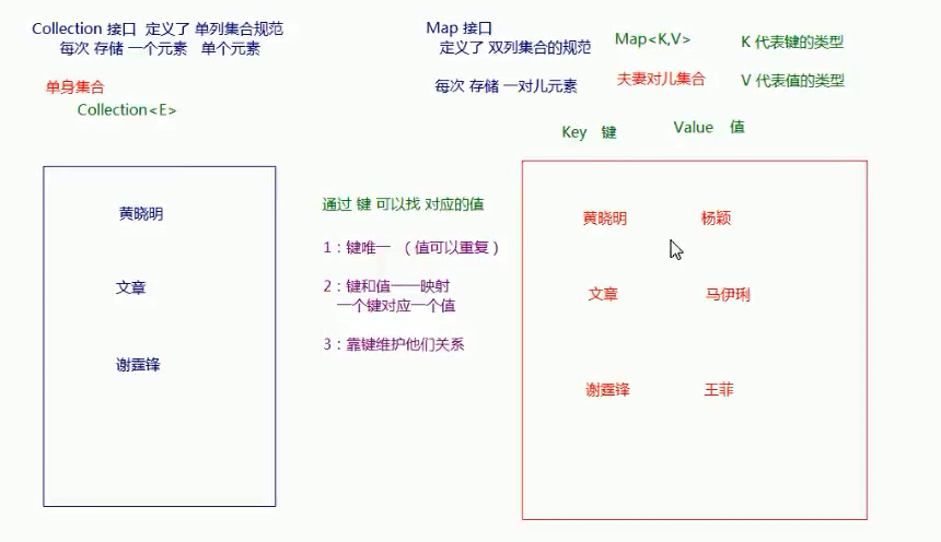 2.Map集合中的元素,key和value的数据类型可以相同,也可以不同
