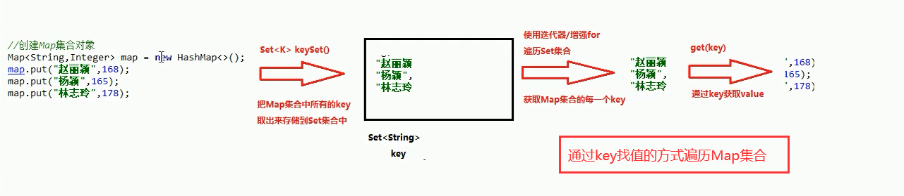//1.使用Map集合中的方法keySet(),把Map集合所有的key取出来,存储到一个Set集合中