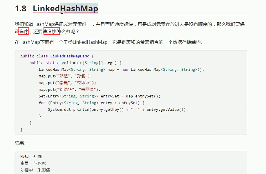 2.LinkedHashMap集合是一个有序的集合,存储元素和取出元素的顺序是一致的