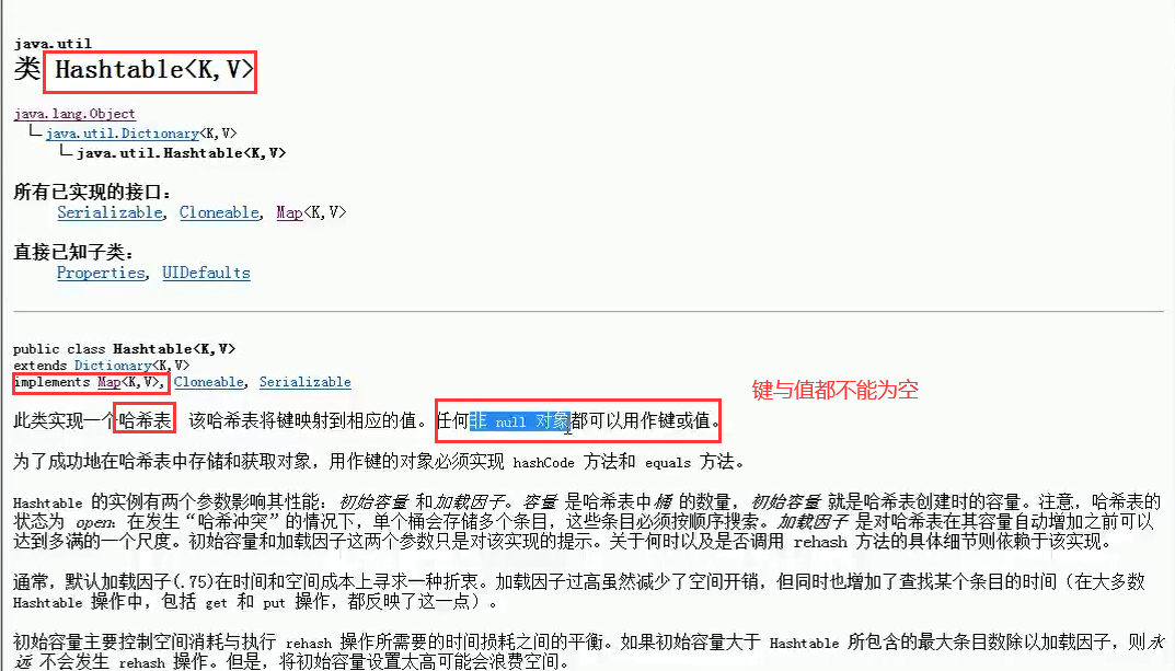 java.util.Hashtable<K,V>集合 implements Map<K,V>接口