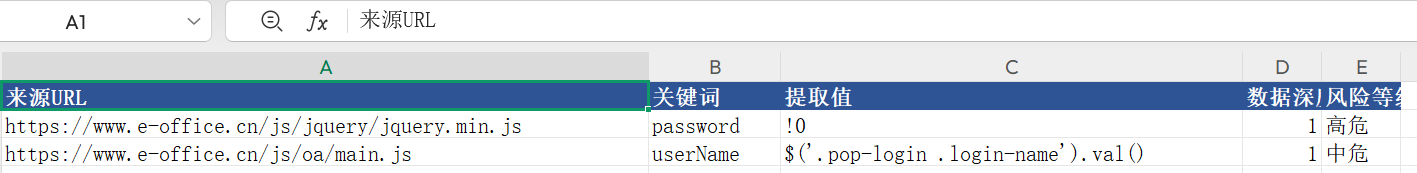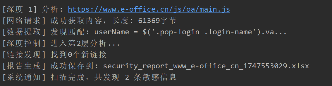 用于输入网址后获取该页面所有的js脚本,根据自定义的关键字匹配对应的value,实现js信息收集的便利性与灵活性。