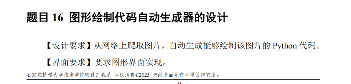 【设计要求】从网络上爬取图片,自动生成能够绘制该图片的 Python 代码。
