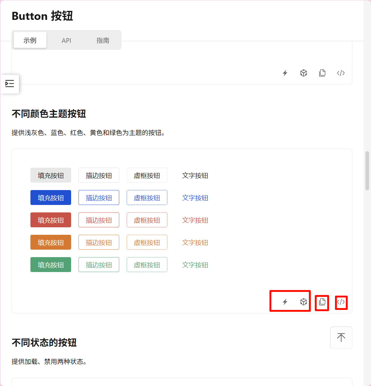 4.1以Button 按钮 为例子,有多种样式选择,还可以自定义渲染元素,此外,下图标红的很好用