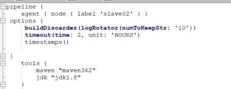 buildDiscarder 持久化工件和控制台输出,用于保存Pipeline最近几次运行的数据