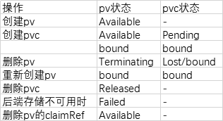 对于k8s的pv与pvc应该都不陌生,但是对使用过程中,还是会对这两者的状态会有疑惑。删除pv时为何会被hang住?pv无缘无语failed?下面这图是状态的变化。