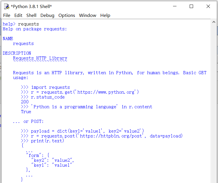 步骤3:输入对应的模块,可以查看具体包括的功能和模块所在位置,找到源文件,能详细阅读程序内容,同时在网络上也可以查找中英文的帮助文档。以requtest模块为例。