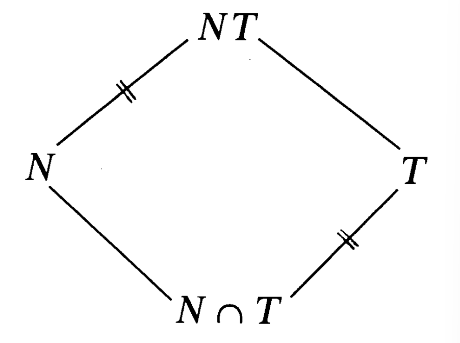 Proposition 3.4.12 If \(H\) and \(K\) are subgroups of \(G\) having finite index, then \([G:H\cap K]\le [G:H][G:K]\). Moreover, if \(([G:H],[G:K])=1\), then \([G:H\cap K]=[G:H][G:K]\).