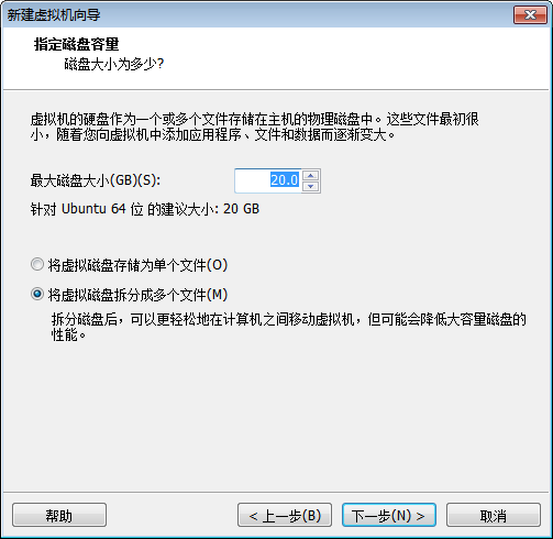 6.下一步,给予虚拟机运行内存(用于测试的建议选择储存为单个文件,便于删除)