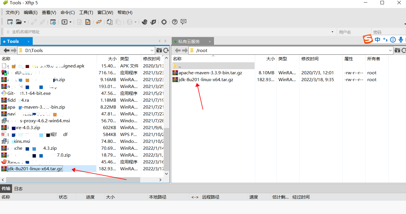 2、通过Xftp将jdk文件上传至服务器指定的路径下