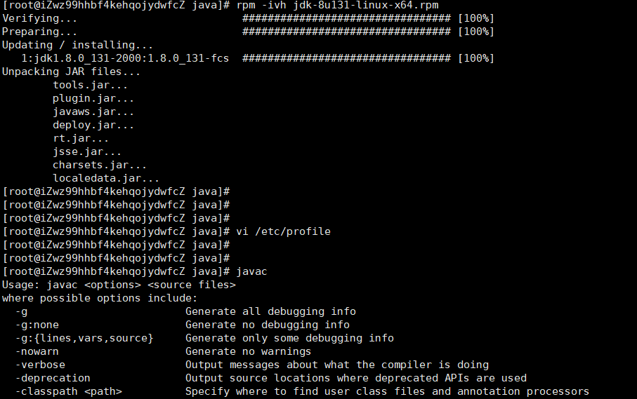 rpm -ivh jdk-8u131-linux-x64.rpm