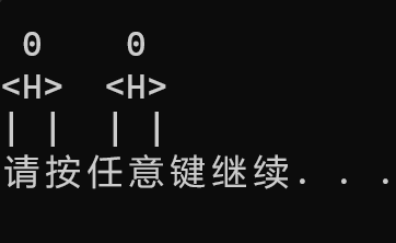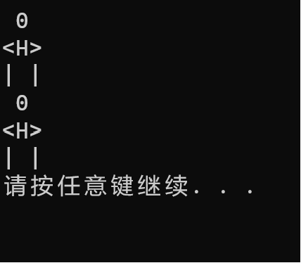 1 #include<stdio.h> 2 #include<stdlib.h> 3 int main() 4 { 5 printf(" 0 \n"); 6 printf("<H>\n"); 7 printf("| |\n"); 8 printf(" 0 \n"); 9 printf("<H>\n"); 10 printf("| |\n"); 11 12 13 system("pause"); 14 return 0; 15 }
