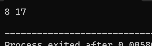 1 #include<stdio.h> 2 int func(int,int); 3 4 int main(){ 5 int k=4,m=1,p1,p2; 6 7 p1=func(k,m); 8 p2=func(k,m); 9 printf("%d %d\n",p1,p2); 10 return 0; 11 } 12 13 int func(int a,int b){ 14 static int m=0,i=2; 15 i+=m+1; 16 m=i+a+b; 17 18 return m; 19 }