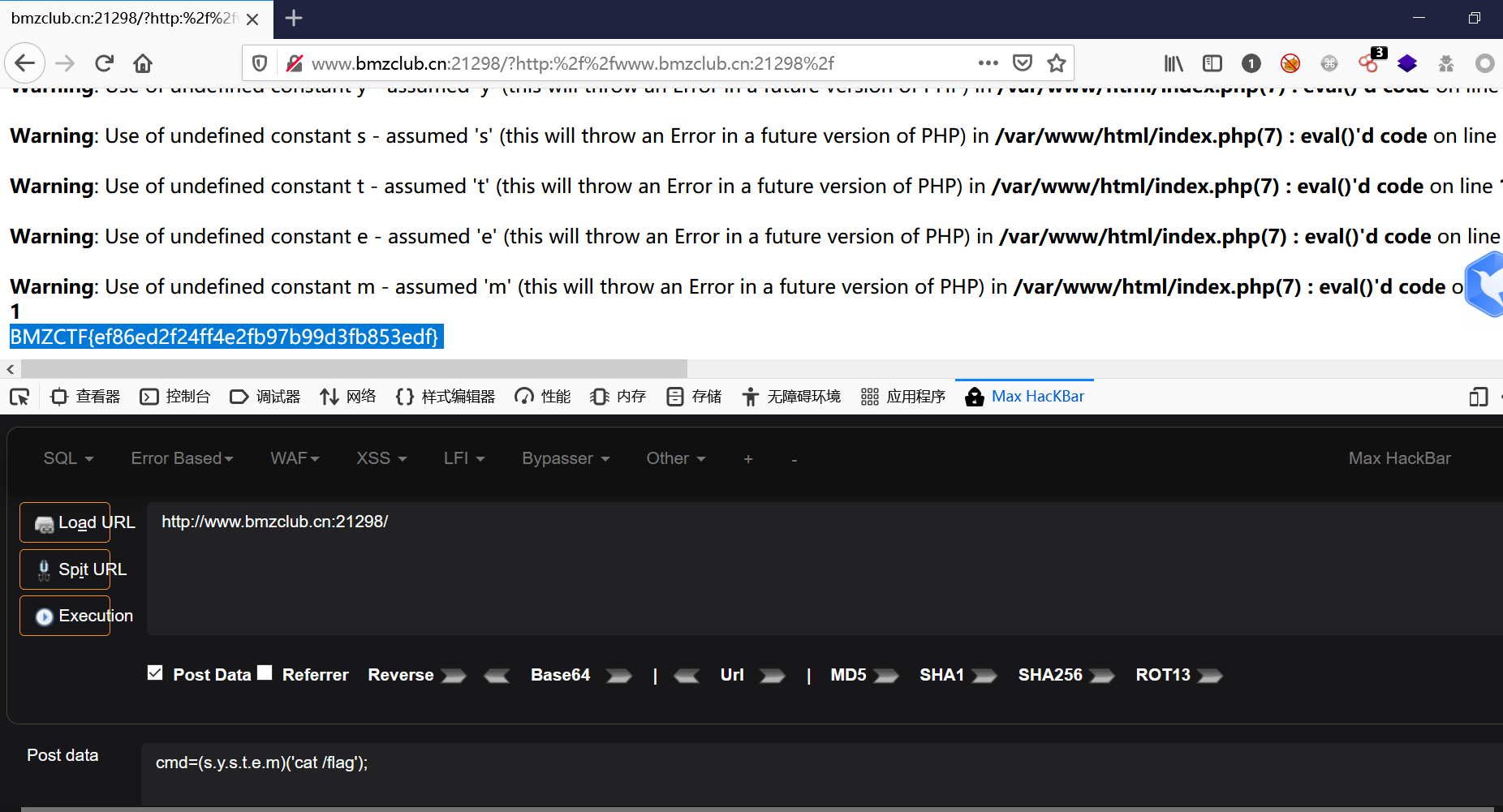 说白了就是替换字母的,把黑名单里面的东西替换成BMZCTFM,hackbar构造一下。