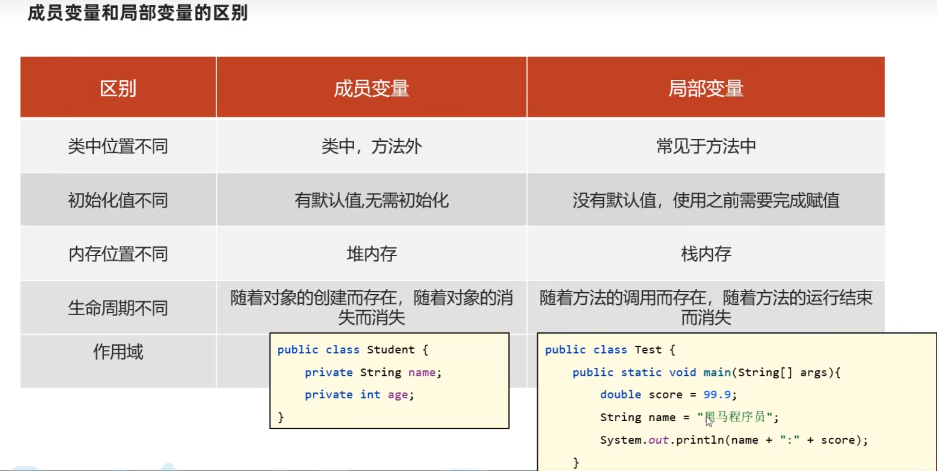 成员变量和局部变量不同: