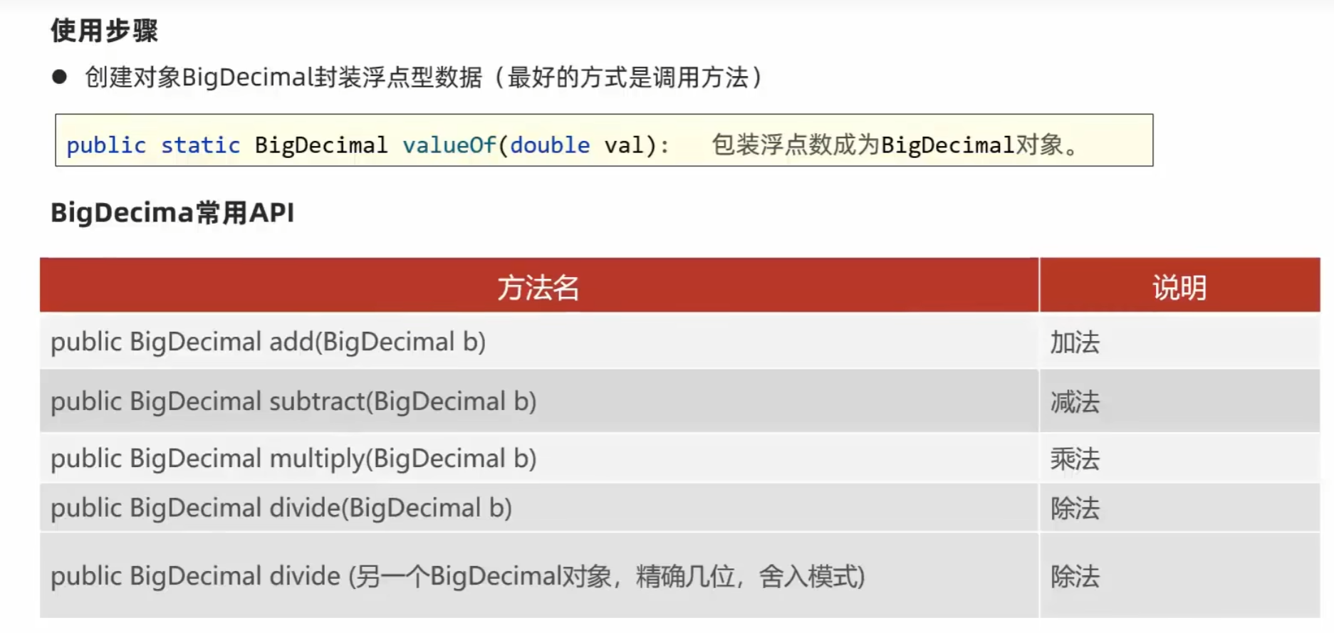 BigDecimal的常用API: