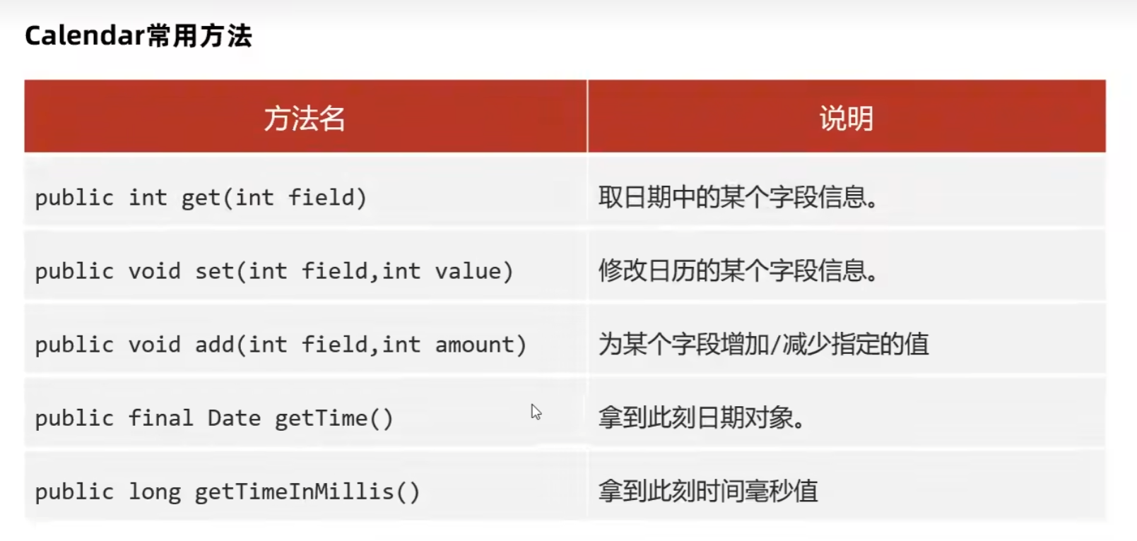 Calendar的API: