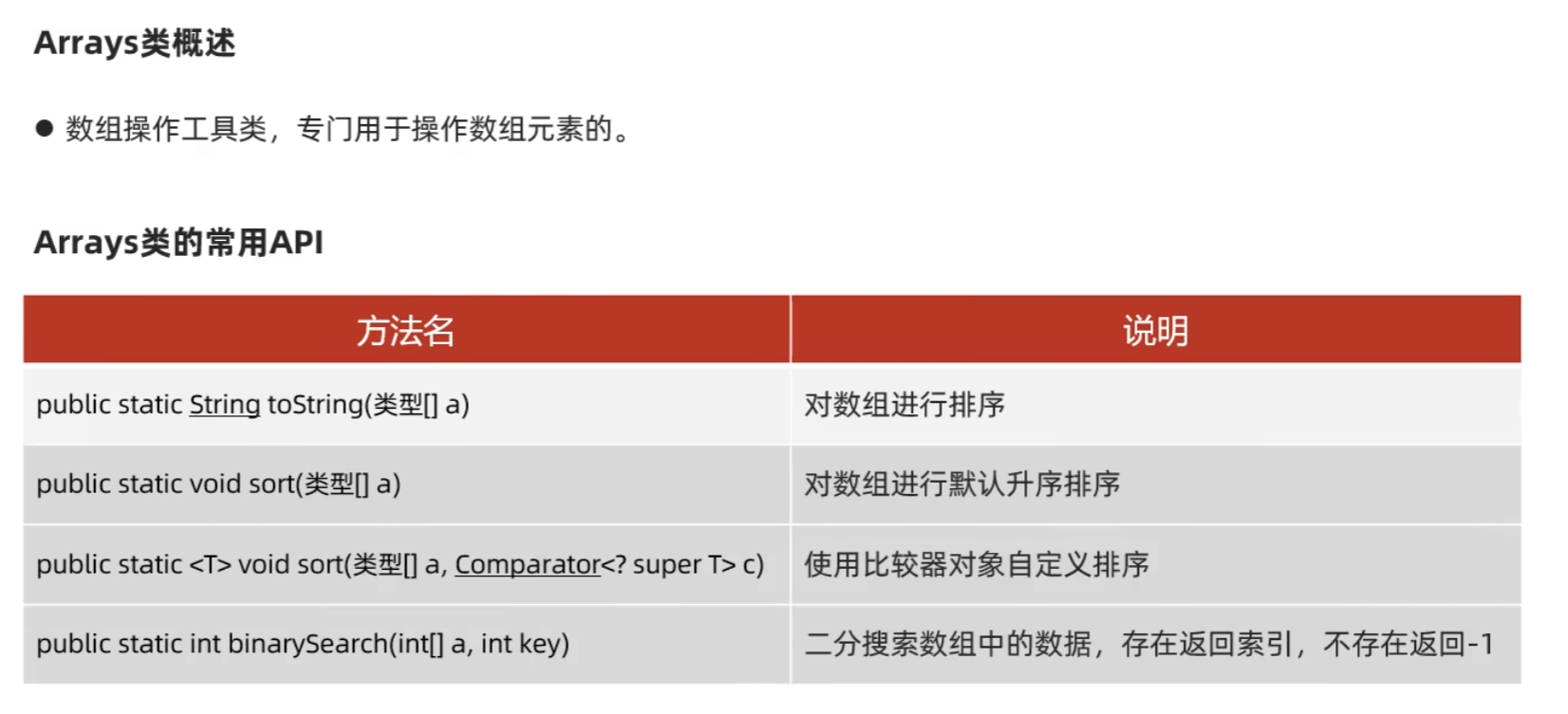 Arrays类作用和常用API: