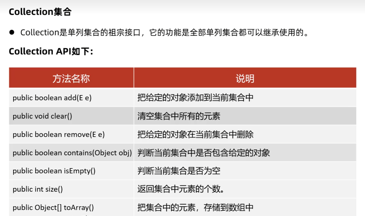 Collection集合常用API: