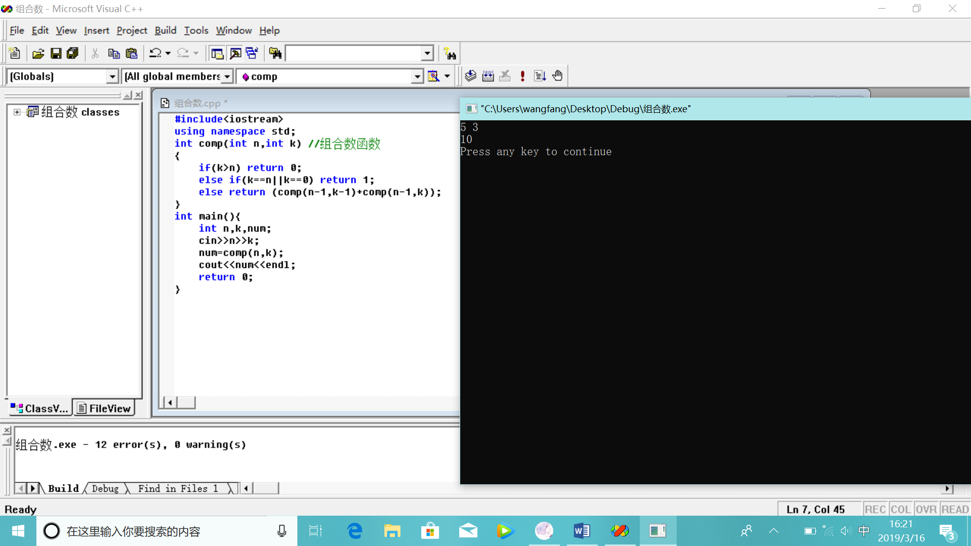 else return (comp(n-1,k-1)+comp(n-1,k));