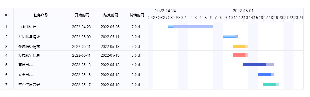 | 客户(请求服务者)功能模块 | 3d | 1 |