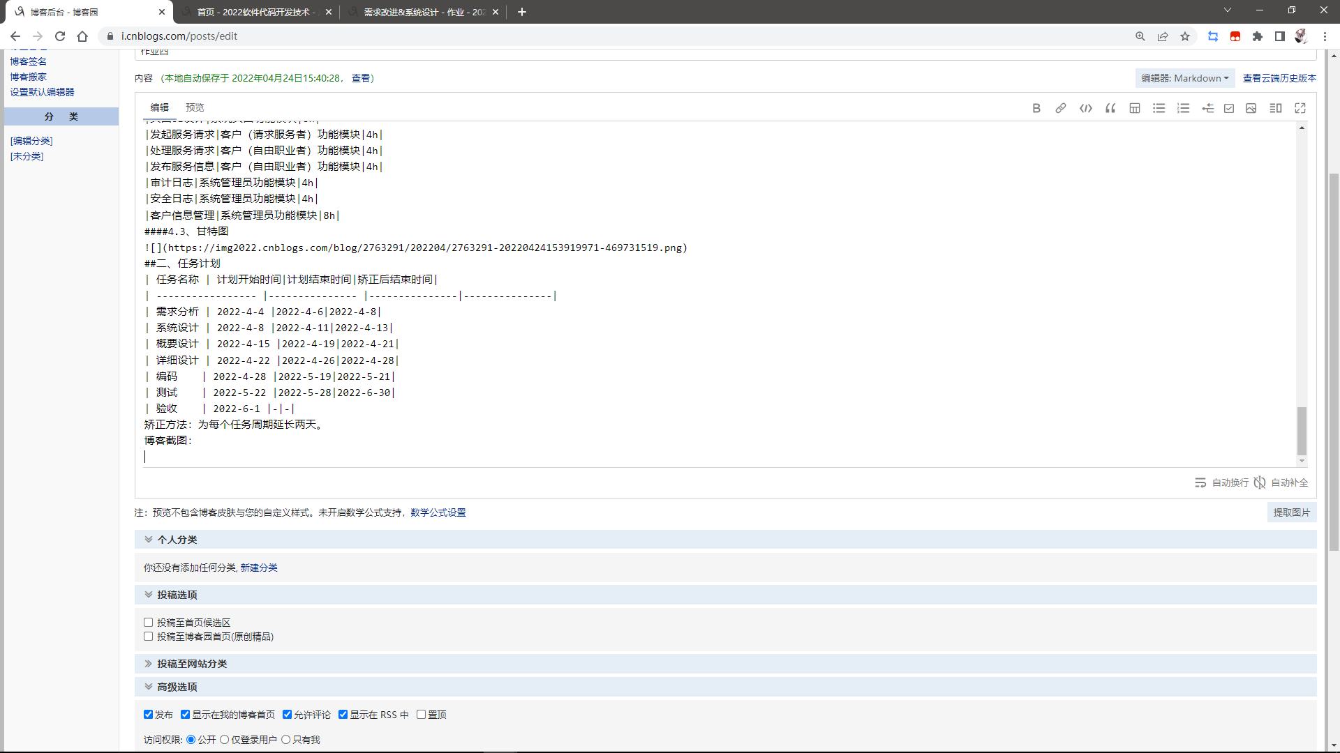 | 需求分析 | 2022-4-4 | 2022-4-6 | 2022-4-8 |