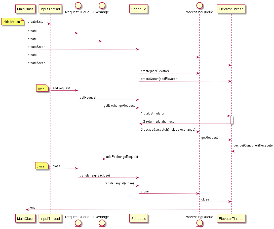ProcessingQueue:局部候乘队列,调度器把请求分配到各局部队列,再由对应电梯线程处理。