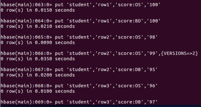 - 分别插入几行数据,几个版本。put/insert