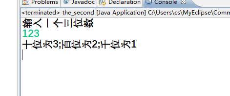 mport java.util.Scanner;public class B {public static void main(String[] args) { Scanner input=new Scanner(System.in);int b,c,d;//对应十位,百位,千位 System.out.println("输入一个三位数");int a=input.nextInt(); d=a/100; c=a%100/10; b=a%10; System.out.println("十位为"+b+";"+"百位为"+c+";"+"千位为"+d); } }