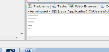 public class Sj2 { public static void main(String[] args){ int i,j; for(i=1;i<6;i++){ for(j=1;j<7-i;j++){ System.out.print("*"); } System.out.println(); } } }