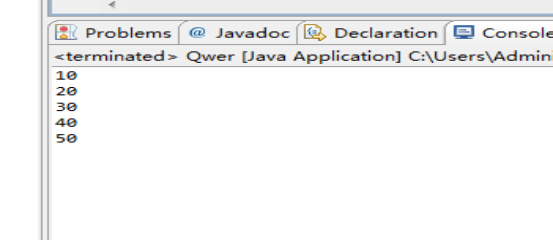 package qwer; public class Qwer { public static void main(String[] args){ int[] a = {10,20,30,40,50}; for(int i = 0;i<5;i++){ System.out.println(a[i]); } } }