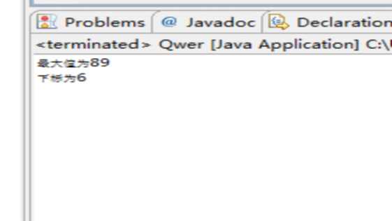 package qwer; public class Qwer { public static void main(String[] args){ int[] a = {18,25,7,36,13,2,89,63}; int max = 18; int max01 = 0; for(int i = 1;i<a.length;i++){ if(a[i]>max){ max = a[i]; max01 = i; } } System.out.println("最大值为"+max); System.out.println("下标为"+max01); } }