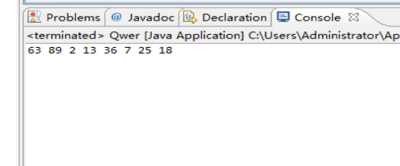 public class One { public static void main(String[] args) { Random random = new Random(10); int a[] = new int[10]; for (int i = 0; i < a.length; i++) { a[i] = random.nextInt(100); System.out.print(" "+a[i]); } for (int i = 0; i < a.length - 1; i++) { for (int j = 0; j < a.length - 1 - i; j++) { if (a[j] >a[j + 1]) { int k = a[j]; a[j] = a[j + 1]; a[j + 1] = k; } } } System.out.println(); for (int i = 0; i < a.length; i++) { System.out.print(" " + a[i]); } } }