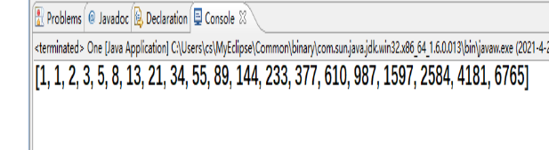 package sjzy; import java.util.Arrays; public class One { public static void main(String[] args) { int []a=new int[20]; a[0]=1; a[1]=1; for (int i = 2; i < a.length; i++) { a[i]=a[i-1]+a[i-2]; } System.out.println(Arrays.toString(a)); } }