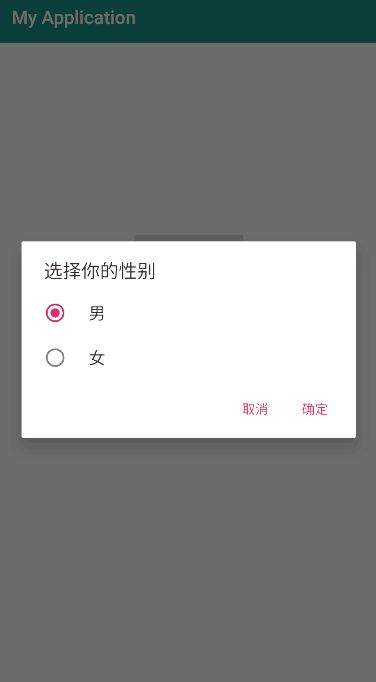 .setSingleChoiceItems(new String[]{"男", "女"},sex, new DialogInterface.OnClickListener() {