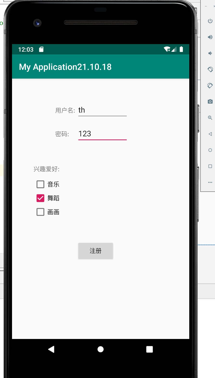 android:text="密码:"/>