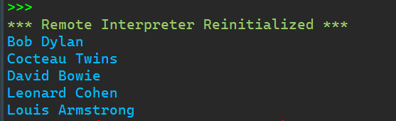 name_list = ['david bowie','louis armstrong','leonard cohen','bob dylan','cocteau twins']