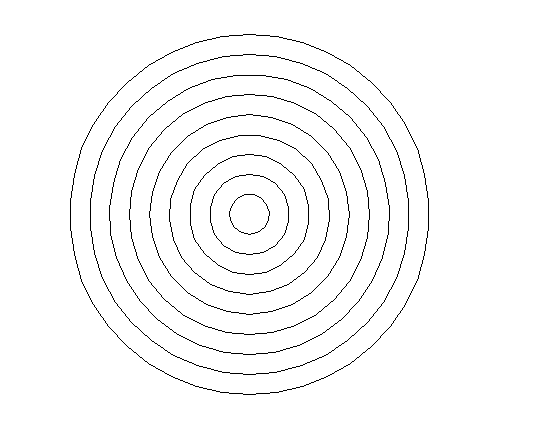 from turtle import * def moveto(x,y): penup() goto(x,y) pendown() def main(): setup(800,600) radius=20 offset=20 for i in range(9): moveto(0,-radius) circle(radius) radius+=offset hideturtle() done() main()