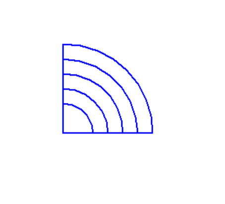 from turtle import * pensize(2) def move(x,y): penup() goto(x,y) pendown() def quarter_round(r): pencolor('blue') move(0,r) circle(-r,90) for i in range(2): right(90) fd(r) home() radius=40 offset=20 for i in range(5): quarter_round(radius) radius+=offset hideturtle() done()