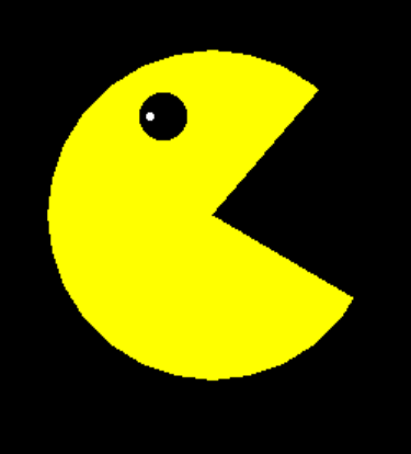 from turtle import * def move(x,y): penup() goto(x,y) pendown() bgcolor('black') color('yellow') move(0,-100) begin_fill() circle(100) end_fill() color('black') speed(0) move(87,-51) seth(60) begin_fill() circle(100,80) home() end_fill() move(-30,60) dot(30,'black') move(-38,60) dot(5,'white') hideturtle() done()