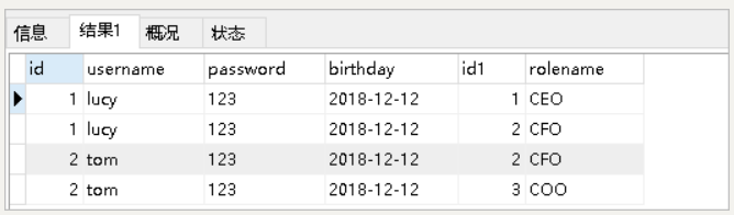 对应的sql语句:select u.,r.,r.id rid from user u left join user_role ur on u.id=ur.user_id