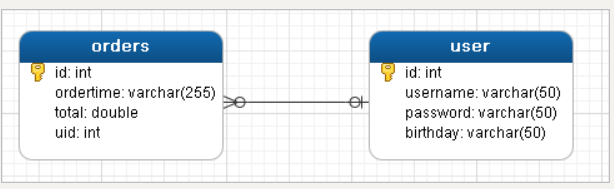 用户表和订单表的关系为,一个用户有多个订单,一个订单只从属于一个用户